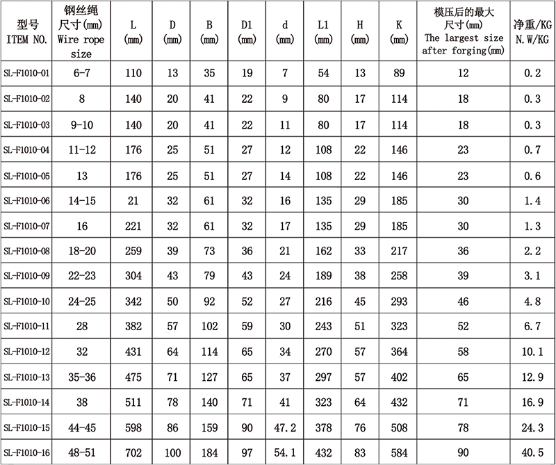 1、接头采用碳钢模锻而成,压合钢丝绳处采用机械加工,尺寸精度高,可放心与钢丝绳配合使用。