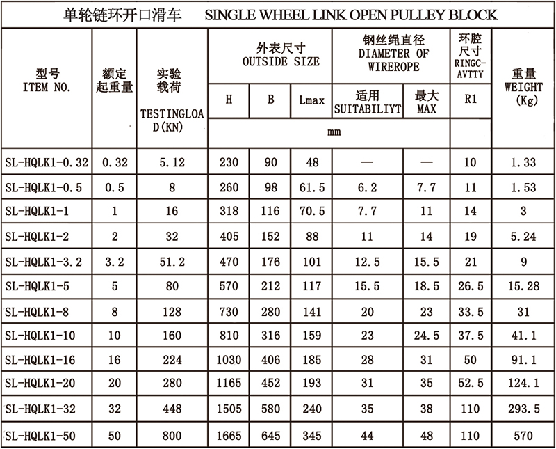 单轮链环开口滑车